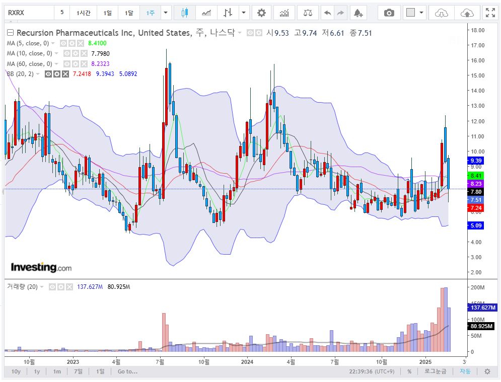 리커젼 파마슈티컬스(Recursion Pharmaceuticals, NASDAQ: RXRX)는 AI와 머신러닝을 활용한 신약 개발 기업입니다.전통적인 제약회사와 달리, 데이터를 기반으로 신약 후보 물질을 발굴하는 것이 강점입니다.