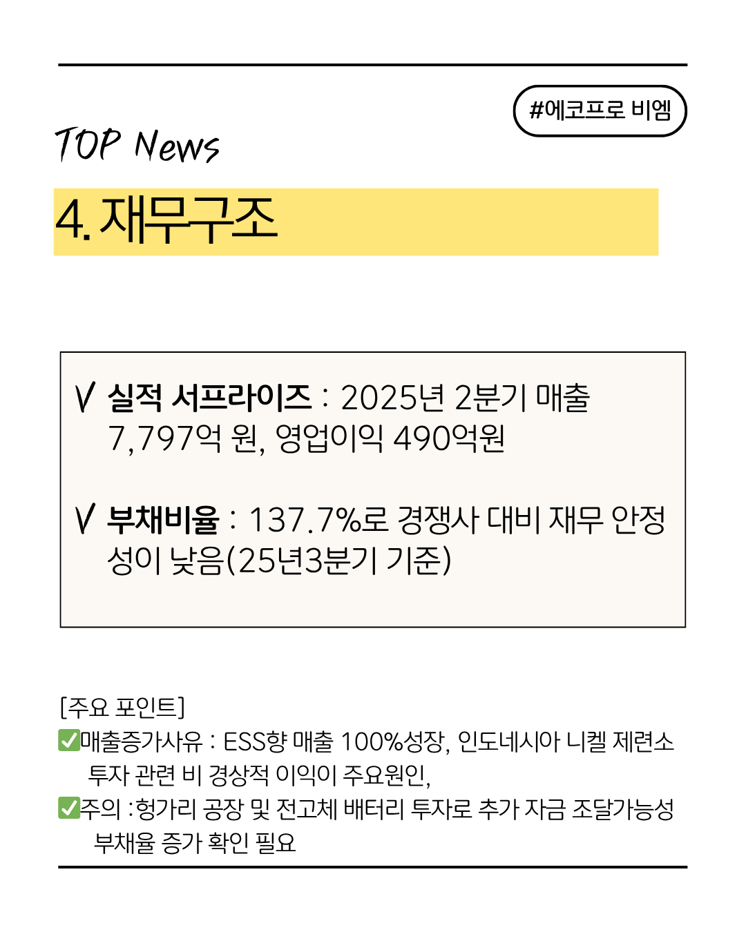 ● 원가 경쟁력: 황산메탈 제련 공정 내재화 및 인도네시아 니켈 수직 계열화로 비용 절감.