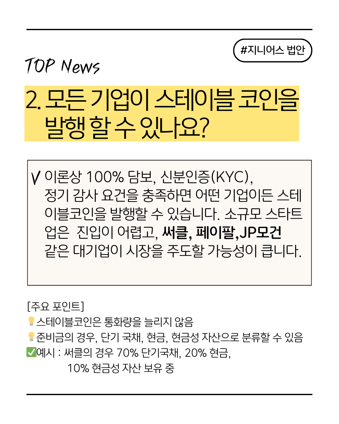 | 써클(Circle) | CRCL | NYSE | 준수 | USDC 발행, 지니어스 법 요건 충족 |